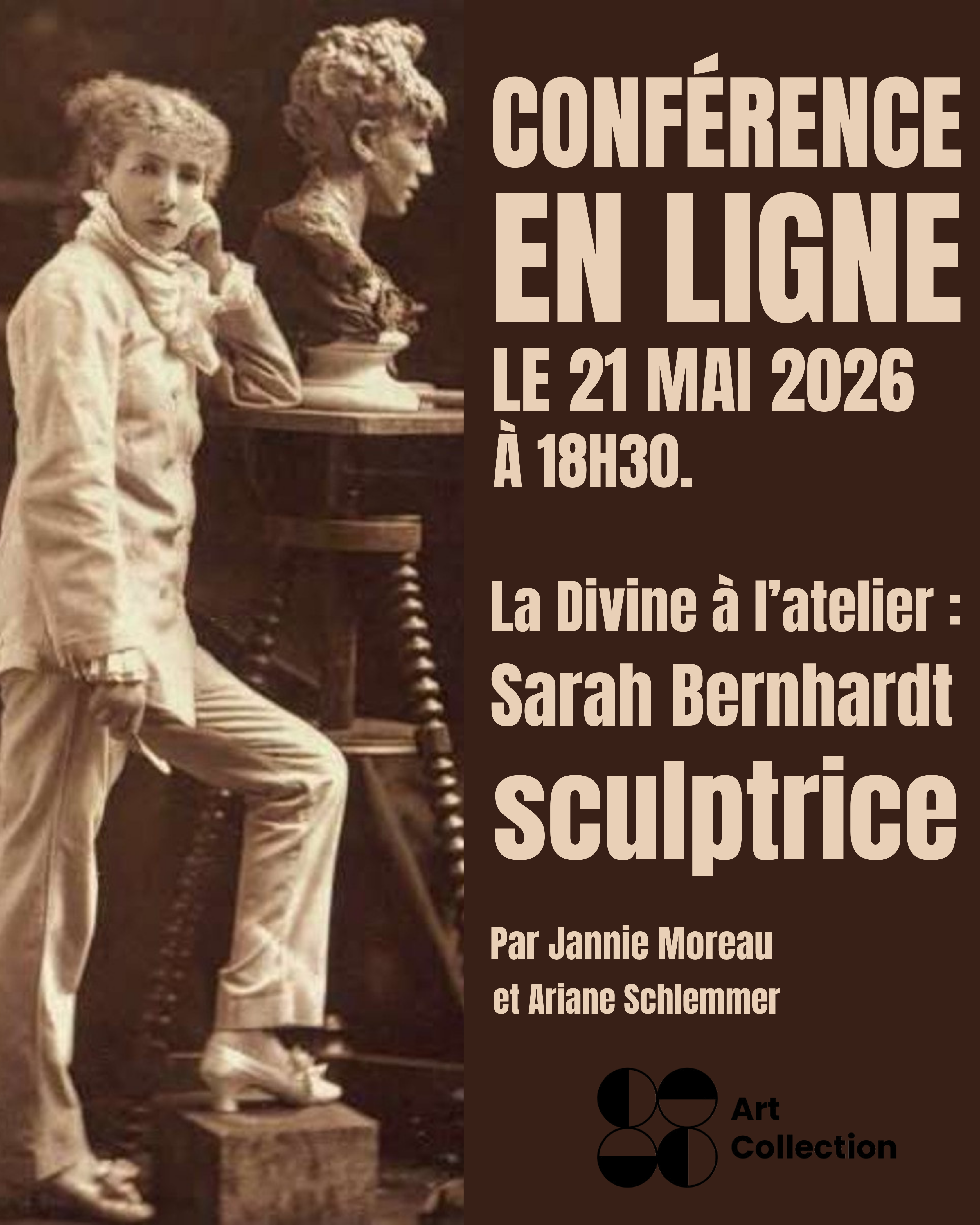 Dans le cadre d’un rendez-vous culturel proposé par ArtCollection, Jannie Moreau et Ariane Schlemmer, toutes deux diplômées de l’École du Louvre, proposent une conférence consacrée à une facette méconnue de Sarah Bernhardt : son travail de sculptrice.