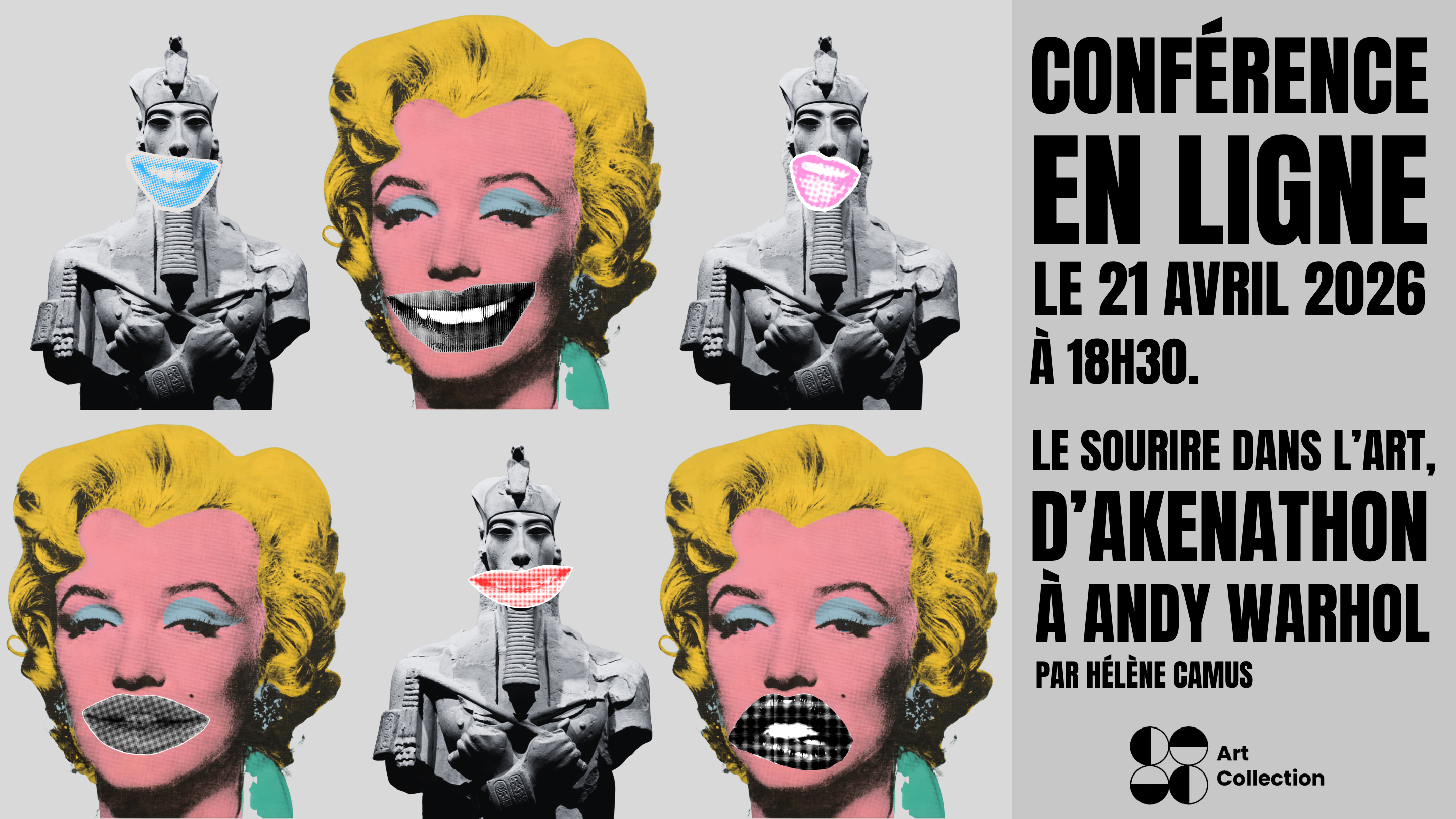 Partons avec Hélène Camus, à la découverte de ces sourires à travers les âges et les cultures, en commençant par le pharaon Akhénaton. Chaque époque, chaque société a donné au sourire une signification particulière, reflétant ses valeurs, ses tabous ou ses idéaux. Observons ensemble comment ce simple geste a évolué, ce qu’il révèle de nous, et pourquoi il a parfois été effacé des représentations artistiques.
