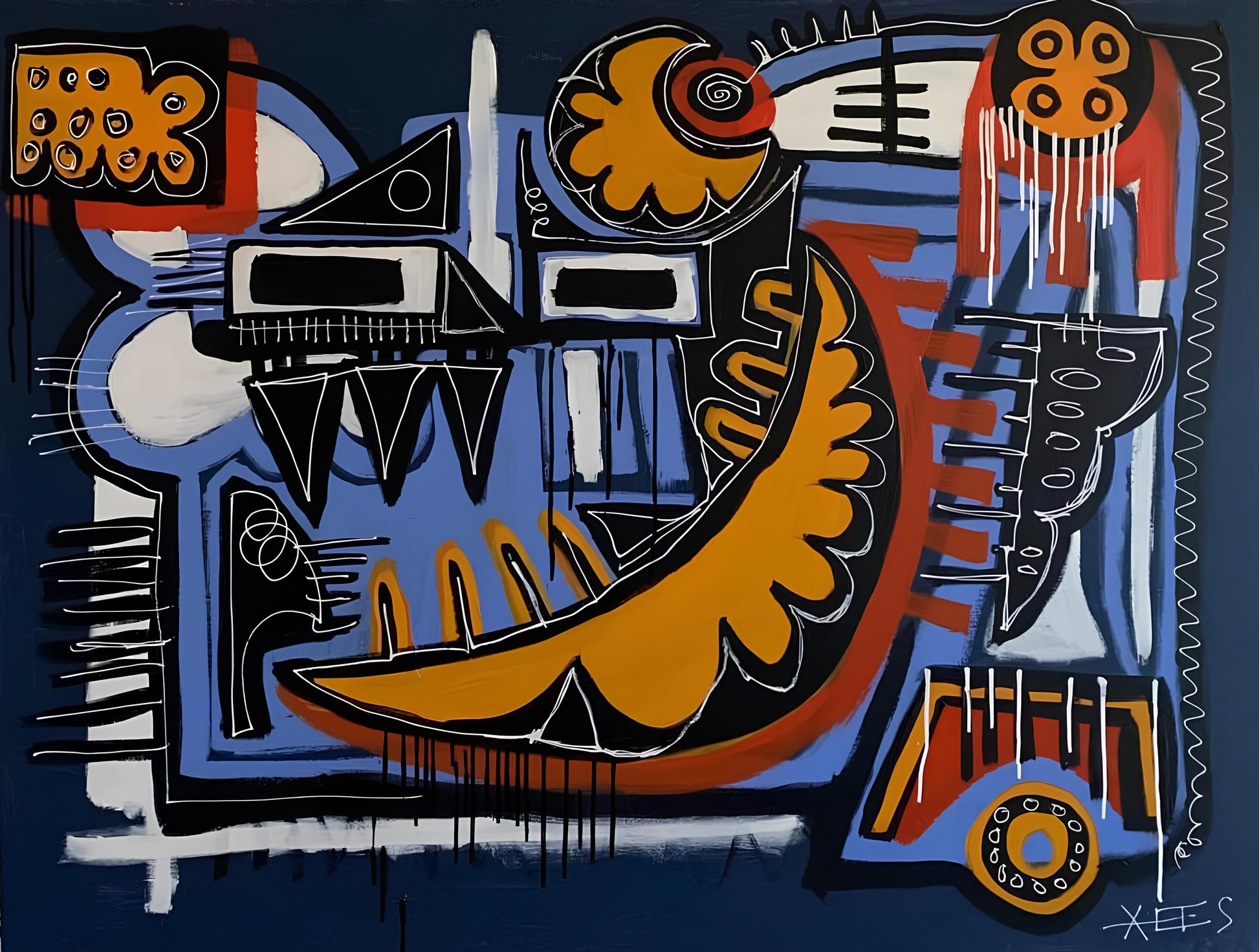 Alpha est une œuvre réalisée à l’acrylique et à l’encre sur toile, mesurant 72 x 100 cm. Elle explore la rencontre entre gestualité et précision, jouant des contrastes de matière et de lumière.