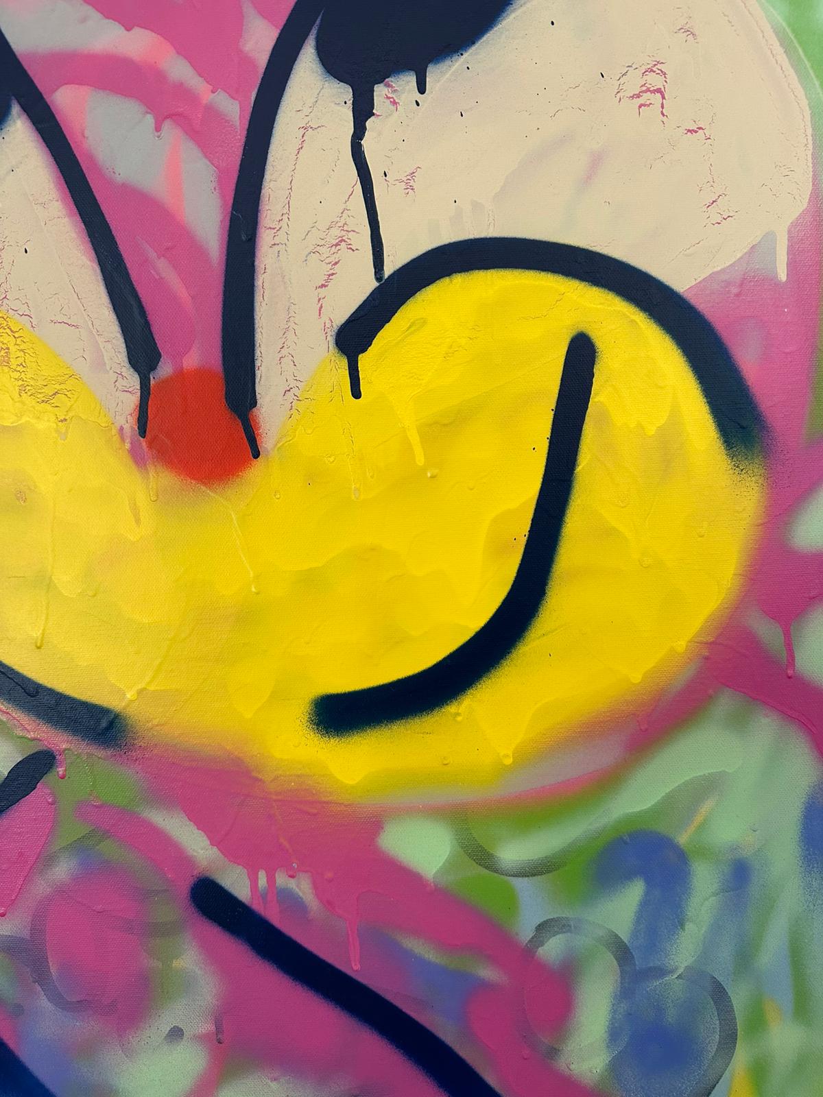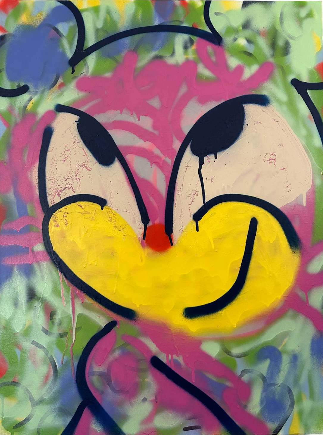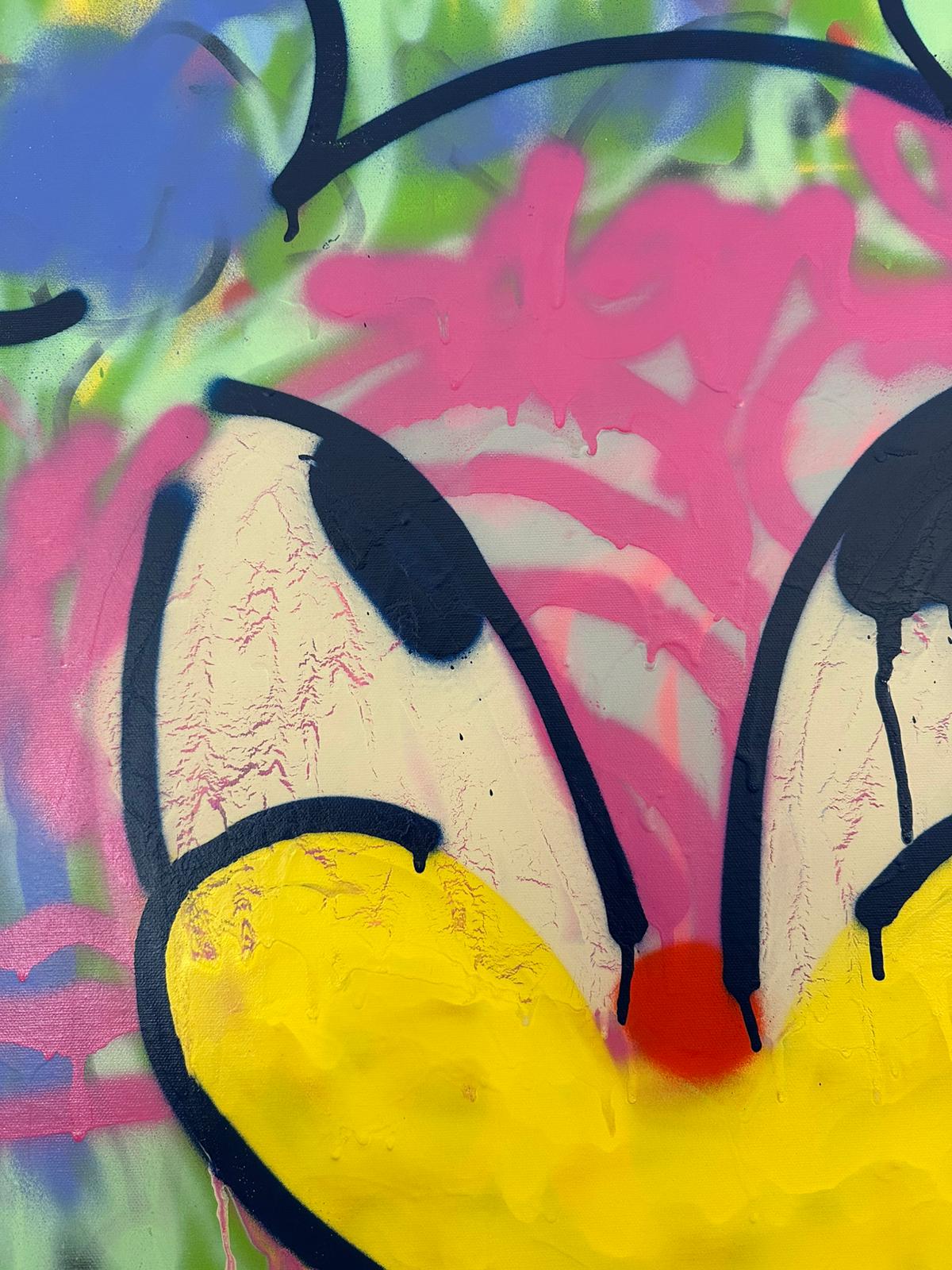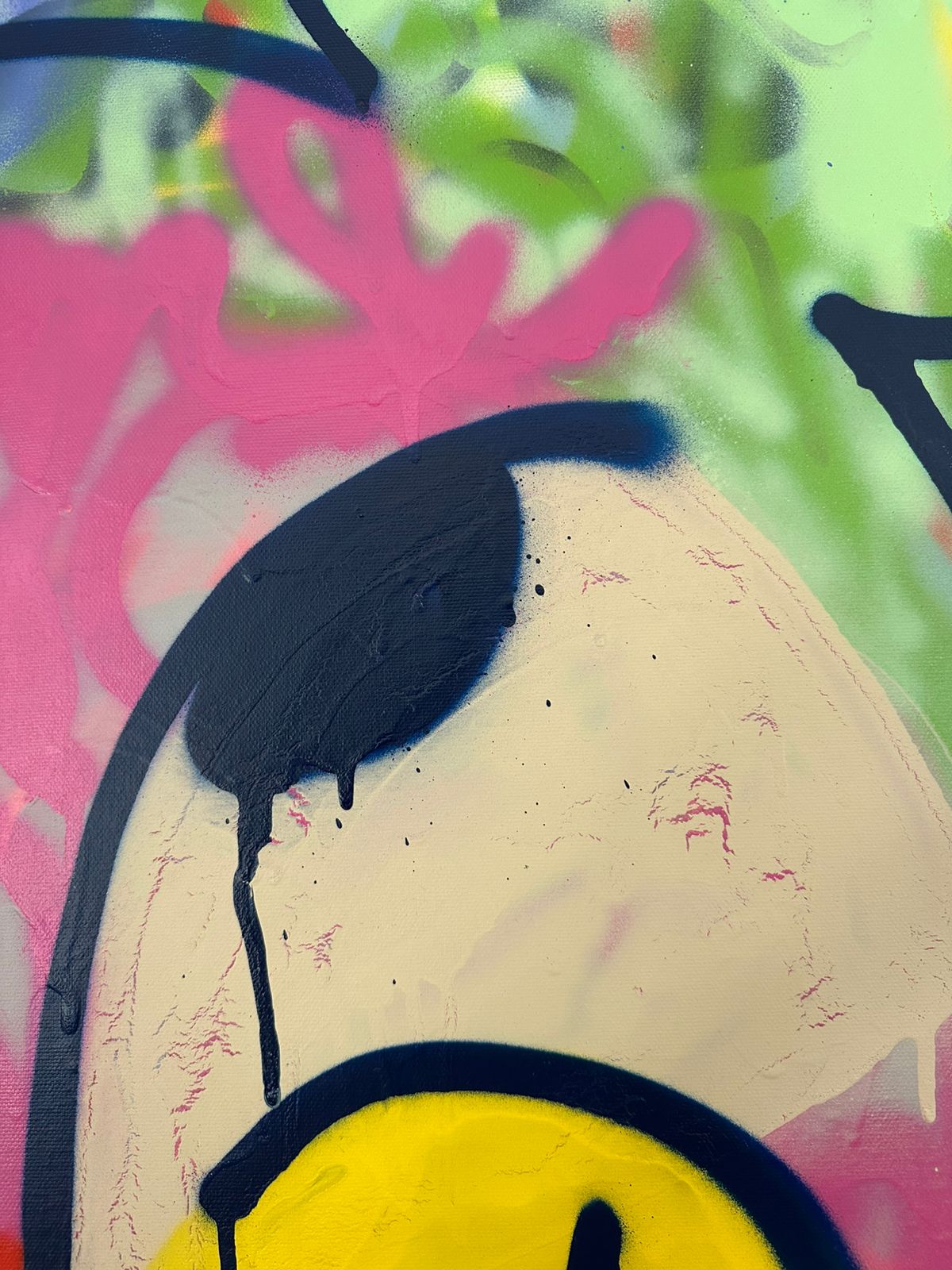 Jungle est une toile peinte à l’aérosol. L’idée derrière ce tableau : montrer ce qui se cache au-delà des réseaux sociaux, aux aspects souvent un peu trop léchés. Les mesures de ce tableau sont 60 x 80 cm.