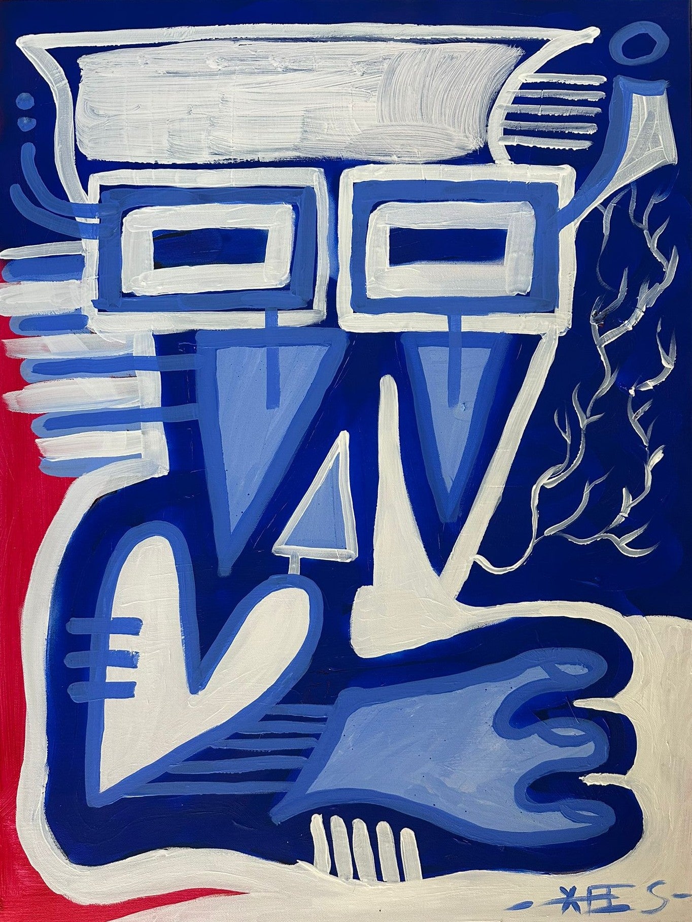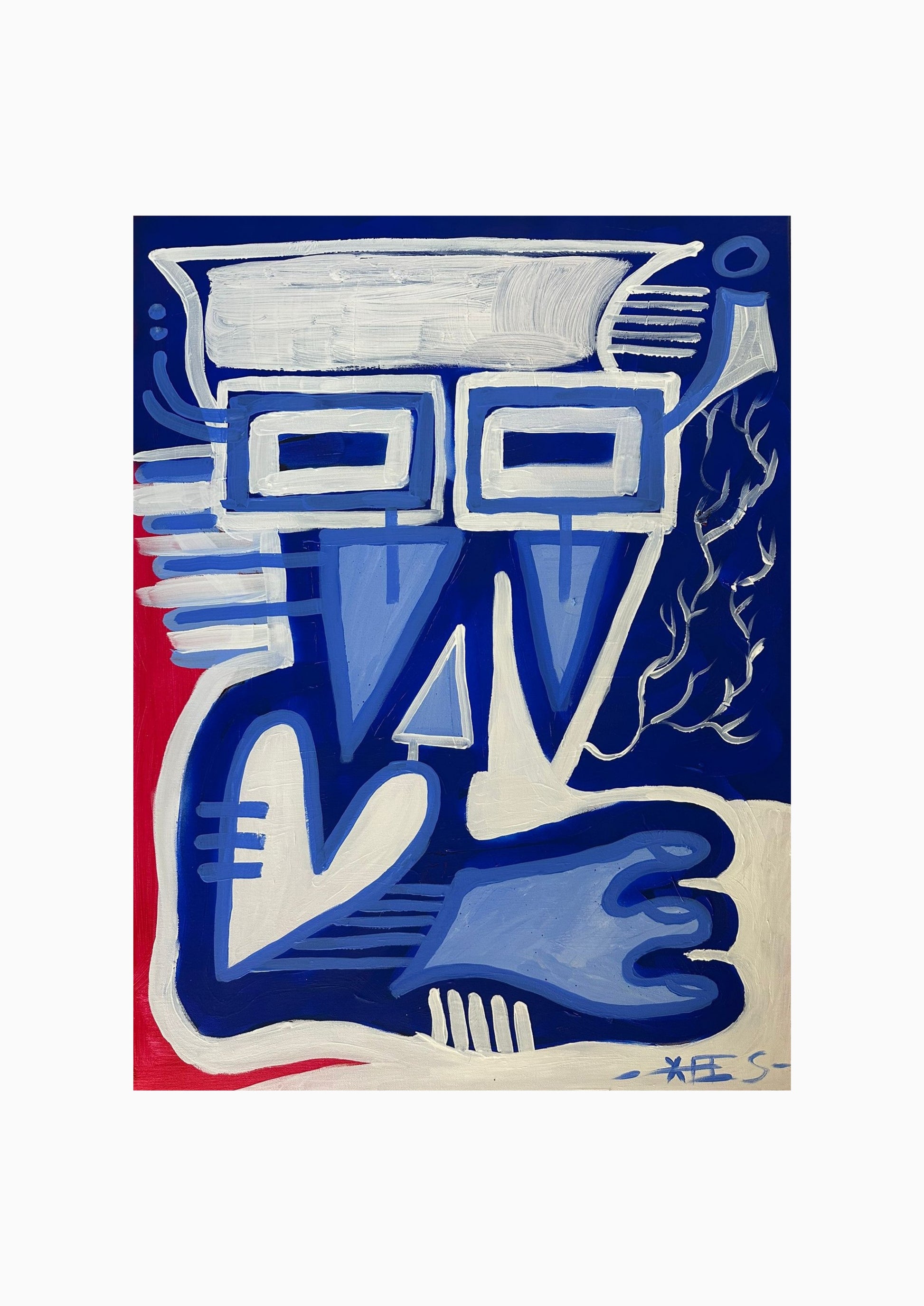 L'Esprit géométrique est un tableau réalisé à l’acrylique sur toile. L’œuvre, aux formes géométriques dynamiques, mesure 80 x 60 cm.